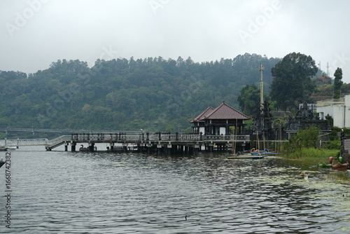 Small Concrete Pier on a Misty Mountain Lake
