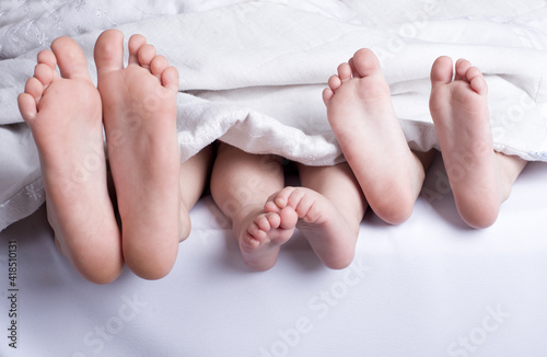 small feet of children under the covers