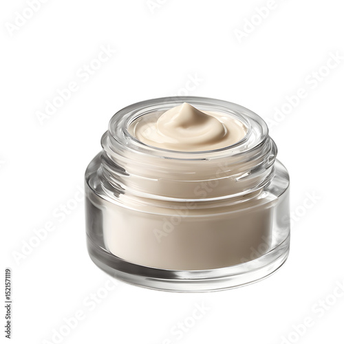 Small jar of eye primer with creamy texture, isolated on a empty plain background