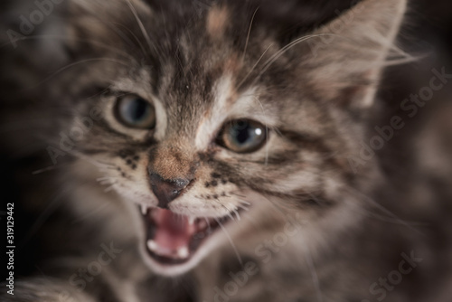 small kitten close-up, is snorting