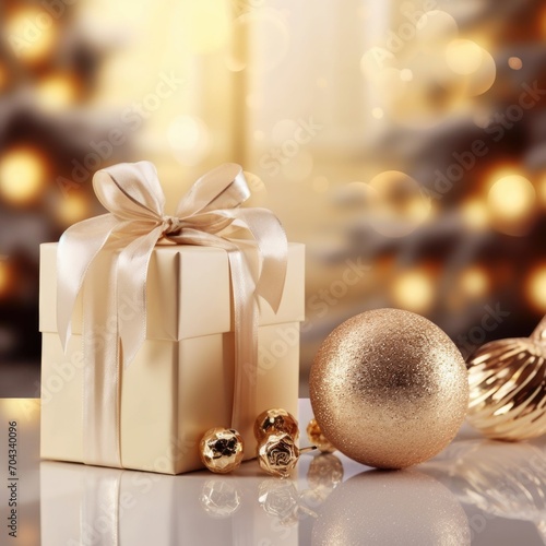 Small light gold and beige gift box and christmas decorations - luxury aesthetic - festive