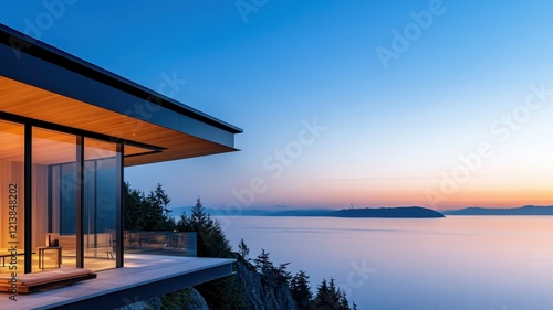 Small luxury modern home perched on a pristine coastline, blending elegance with breathtaking ocean views.