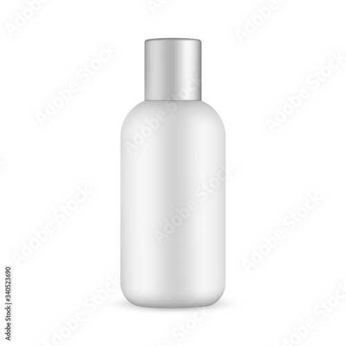 Small plastic bottle with metallic cap mockup isolated on white background. Vector illustration