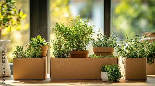 plant, herb, potted, box, sunlight, window, table, home, garden, nature, greenery, fresh, organic, growth, indoor, brown, terracotta, light, soft, sharpened, blur, detail, closeup, natural, healthy, growing, spring, summer, warm, bright, daylight, simple, rustic, minimalist, still life, arrangement, decorative, living, space, calm, peace, homegrown, freshness, pottery, succulent, thyme