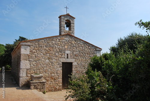 small stone chapel with bell on the roof