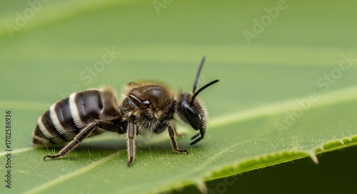 bee, insect, nature, leaf, wildlife, closeup, macro, striped, brown, green, animal, photo, insect, macrophotography, wild, environment, detail, small