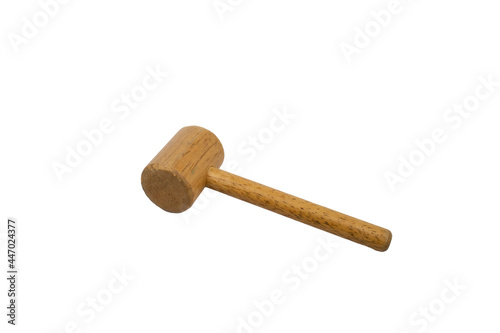Small wooden gavel on White Background, Carpentry Tool Wooden Hammer ,