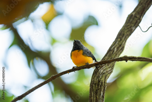 bird, yellow, breast, songbird, perched, tree branch, rainforest, wildlife, nature, feather, colourful, closeup, avian, wild, exotic, jungle, costa rica, central america, beak, fauna, plumage, light, perch, forest, outdoors, birding, passerine, tree, tropical bird, foliage, green, sunlight, habitat, small bird, flycatcher, peaceful, canopy, wild bird, observation
