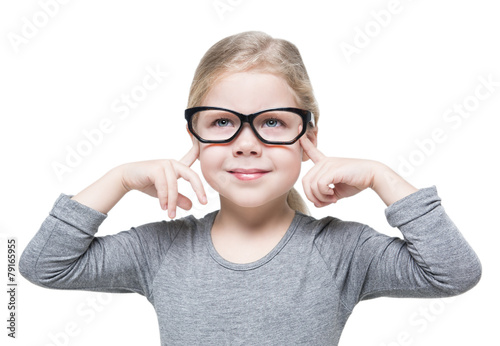 Smart beautiful little girl in glasses isolated