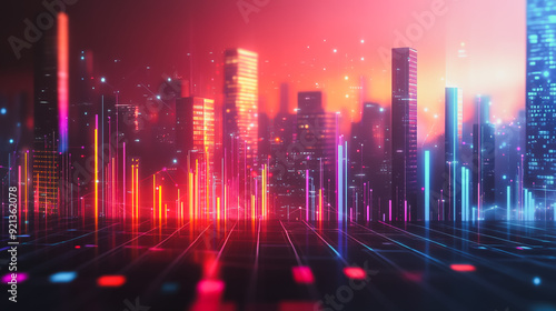 Smart digital city with connection network that is at the cutting edge of innovation in technology and business with bright, modern skyscrapers. Backgrounds for technology and charts and graphs