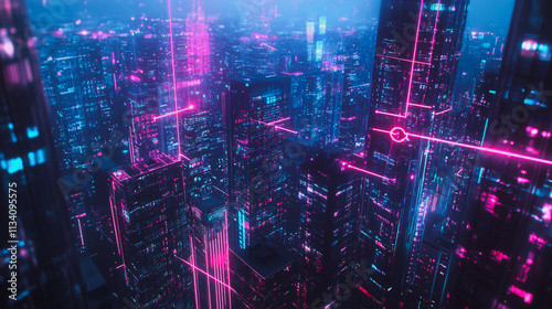 Smart digital Innovation city with connection network reciprocity over the cityscape. of future smart wireless digital city and social media networking systems that connects people with in city