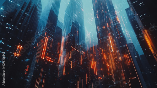 Smart digital Innovation city with connection network reciprocity over the sunset cityscape. of future wireless digital city and social media networking systems that connects people with in city