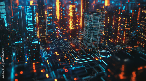 Smart digital Innovation city with connection network reciprocity over the twilight cityscape. of future smart wireless digital city and social media networking systems that connects people with city