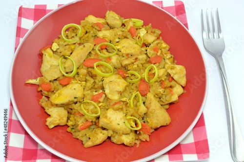 dish, rice, fries, frying, cooking, cook, chicken, dinner, dish, delicious, plate, diet, meal, supper, carrot, carrot, dessert, leek, fork, meat, fowl, filet