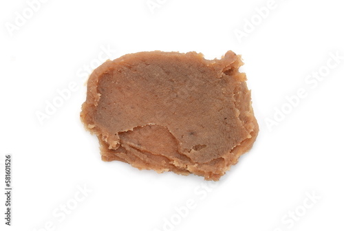 Smeared chestnut puree isolated. Marrons cream, marron spread, castanea jam, homemade chestnuts dessert puddle, stain, drops, spread or splatter on white background