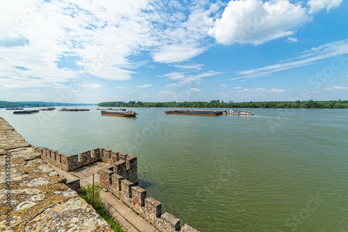 Smederevo, Serbia - May 02, 2019: The Smederevo Fortress is a medieval fortified city in Smederevo, Serbia. View of the Danube River from the fort