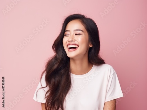 Smile of young Korean woman with healthy white teeth and hygiene Concept of advertising dentist and facial care