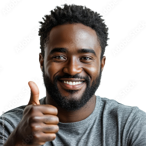 Smiling African man giving a thumbs-up sign isolated on transparent background.
