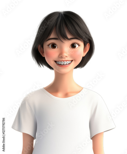 braces, orthodontic, digital artwork, friendly, youthful, cheerful, schoolgirl, adorable, digital rendering, isolated image, sticker, avatar, positive, happiness, fun, vibrant, educational, diversity, asian ethnicity, playful, wholesome, bright, creative, e-learning, engaging