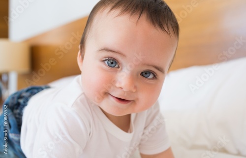 baby, boy, male, caucasian, home, house, bed, cute, innocence, fragility, leisure, home interior, innocent, toddler, children, little, infant, adorable, sweet, lovely, bedchamber, smiling, happy, blue eye, indoor