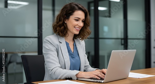 businesswoman, laptop, office, woman, business, computer, working, smiling, work, modern, desk, female, corporate, professional, executive, manager, employee, job, career, occupation, confident, happy, successful, leader, leadership, entrepreneur, entrepreneurship, technology, communication, cyberspace, online, typing, paper, document, indoor, interior, contemporary, workspace, workplace, human resources, hr, cheerful, person, adult