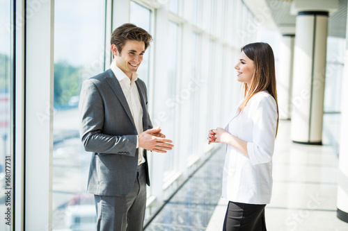 conversation, woman, man, businessman, office, partner, 20s, 40s, attractive, businessperson, businesswoman, caucasian, chatting, posh, colleague, confident, co-worker, discussing, female, indoor, jacket, male, smart, smiling, sophisticated, speaking, staff, standing, stylish, successful, suit, talking, team, attaching, together, window, manpower, workplace