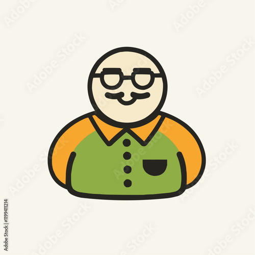 avatar, cartoon, vector, character, elderly, man, person, senior, gentleman, happy, smiling, goggles, moustache, bald, joyful, cheerful, friendly, pleasant, kind, older, adult, profile, icon, symbol, illustration, graphic, design, image, representation, portrait