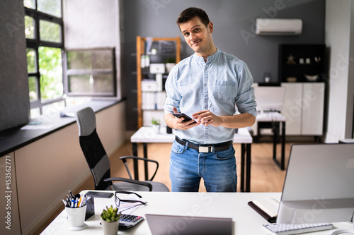 phone, office, man, business, smartphone, male, owner, smiling, entrepreneur, of, mobile, smart, window, taking, break, happy, mobile phone, workplace, corporate, man