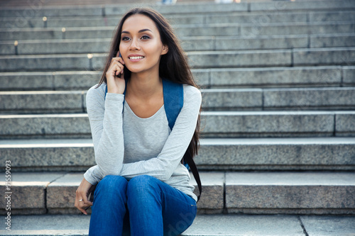 20s, attractive, beautiful, beauty, mobile phone, communication, computer, cute, day, entertainment, female, freedom, fresh, happy, holiday, cyberspace, sitting, leisure, lifestyle, mobile, natural, nature, outdoors, park, people, person, phone, portrait, positive, relax, relaxation, rest, smartphone, smiling, student, summer, technology, teenage, phone, talking, speaking, woman, young, looking, away, stair