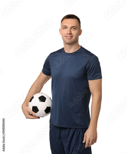 action, adult, athlete, athletic, background, ball, caucasian, champion, championship, competition, competitive, energy, entertainment, equipment, event, exercise, fan, football, game, goal, guy, photogenic, happy, health, healthy, hobby, isolated, leisure, lifestyle, male, man, match, person, play, player, portrait, professional, recreation, shape, smiling, soccer, sport, sport, sportsman, activewear, sporty, tournament, uniform, white