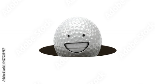 golf ball, smiling face, hole in one, minimalism, graphic design, golf, happy, sport, leisure, fun, image, graphic, illustration, vector, design element