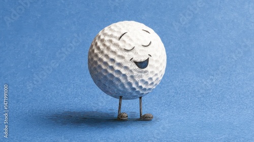 ball, golf, happy, smiling, face, cartoon, whimsical, playful, leg, character, design, simple, cute, light, white, round, sport, object, drawing, illustration, picture, graphic, fun, blue, background, colours, image, creative, modern, art, digital, rendering, three-dimensional, sphere, enjoying, expression, adorable, cheerful, positive