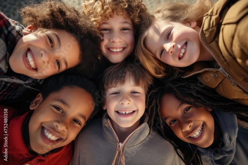 Smiling group of diverse kids taking a selfie outside