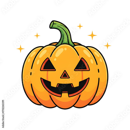 Smiling Halloween Pumpkin Illustration with Sparkles and Stars