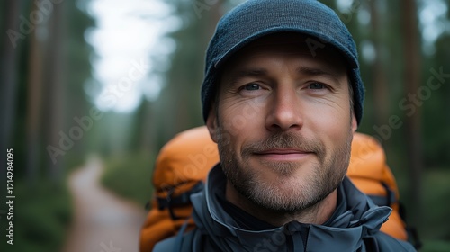 man, smiling, outdoors, backpack, forest, hiking, nature, portrait, adventure, travel, wildlife, exploration, scenery, journey, camouflage, landscape, camping, enthusiasm, healthy, sunlight, greenery, relaxation, exercise, enjoyment, wilderness, hiker, activity, freedom, scenic, portraiture, person, vibrant, calm, confidence, environment, fitness, engagement, solitude, mood, mountain scenery