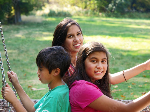 smiling kids on the swing