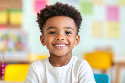 children, boy, smiling, happy, kindergarten, classroom, education, learning, preschool, student, cute, adorable, young, joy, innocence, happiness, school, childhood, desk, bright, colourful, background, fun, cheerful, expression, playful, curly hair, friendly, portrait, youth, positive, indoor