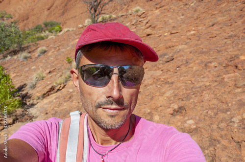 Smiling man enjoying australian countryside on a beautiful day