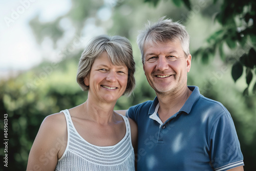 smiling, sunny day, outdoors, garden, happiness, nature, lifestyle, summer, together, senior, joyful, love, human relationships, greenery, healthy, sunlight, leisure, cheerful, content, relaxed, vacation, mature, bonding, harmony, companionship, positive, warmth, casual attire, carefree, idylli, serenity, fun, peaceful, middle-aged, picturesque, environment, bright, friendly, affectionate, engaged, blonde hair, short hair, natural beauty, verdant