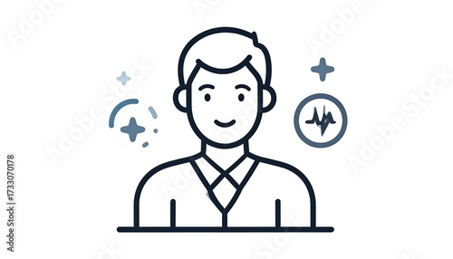 person, smile, suit, medicals, graphic, health, outline, simple, icon, design, profile, business, calm, happy, care, wellness, iconography, illustration, clean, line, digital, modern