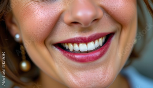 smile, grin, happy, joyful, woman, female, portrait, face, teeth, white, beauty, attractive, make-up, cosmetic, earring, jewellery, person, human, head shot, closeup, expression, emotion, skin, complexion, smooth, clear, overlay, text, obscured, partial, picture, looking, gaze, photo, indoor, style, fashion, accessory, adornment, happiness, cheer, wholesome, radiant, glowing, ai, generative
