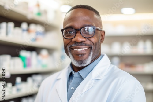 people, smiling, male, man, portrait, african american, middle-aged, apothecary, professional, health care, medicine, work, occupation, mature, adult, medicals, health, customer service, friendly, confident, indoor, retail, hospital, clinic, prescription, service, real people, assistance, expertise, uniform, safe, accurateness, responsible, support, consultation, dedicated, pharmacy, wellness, compassionate, trustworthy, modern, technology, lifestyle, copy space, 1