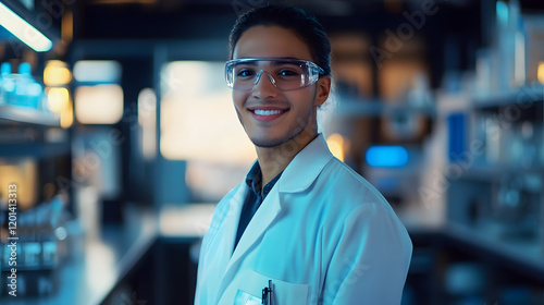 Smiling Scientist in a Modern Lab. Portrait of Passion and Innovation