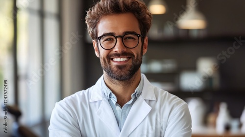 scientist, doctor, professional, portrait, smile, happy, laboratory, coat, goggles, man, research, medicine, health care, science, technology, expert, friendly, confident, successful, positive, healthy, optimistic, hopeful, cheerful, joyful, person, human, male, adult, career, occupation, workplace, studio, indoor, daylight, background, sharpened, expression, white