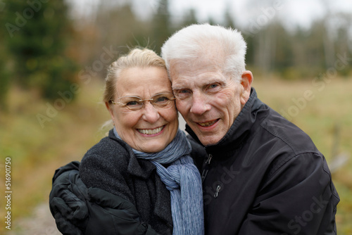 adult, caucasian appearance, color image, couple, daytime, embracing, family, field, happiness, horizontal, hugging, husband, married couple, man, nature, outdoors, people, portrait, selective focus, smiling, spouse, two people, warm clothes, wife, woman, europa, scandinavia, sweden