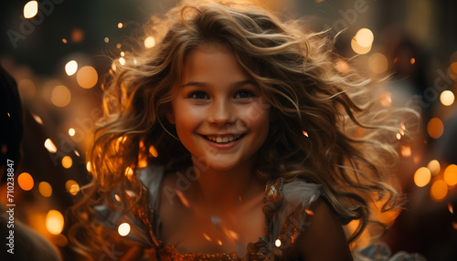 Smiling woman, happiness, cheerful celebration, joy, fun, indoors, females, night generated by AI