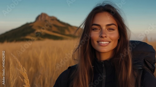 woman, hiker, smiling, mountain, field, gold, sunset, travel, nature, backpack, adventure, portrait, beautiful, happy, traveler, explore, tour tourism, vacation, photo, landscape, sunrise, summer, autumn, fashion, style, long hair, caucasian, outdoors, hiking, healthy, fitness, beauty, blond, picnic, scenic, trip, enjoy, freedom, posing, fresh, sunshine, warm