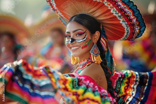woman, traditional, costume, mexican, festival, smile, vibrant, colourful, dress, culture, celebration, hat, flower, folklore, heritage, dance, joy, happiness, portrait, closeup, make-up, accessory, pattern, embroidery, bright, ethnic, clothing, headwear, festivity, cheerful, cultural, event, tradition, jewellery, earring, face, beauty, festive, background, fabric, national, lively, performing, art