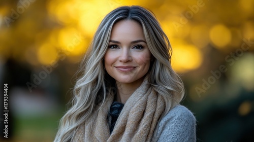 woman, smile, portrait, foulard, autumn, bokeh, nature, warmth, happiness, beauty, outdoors, sunlight, hair, fashion, relaxed, cheerful, season, environment, park, foliage, gold, cosy, joy, confidence, closeup, charming, peaceful, friendly, serene, casual attire, stylish, lifestyle, wanderlust, freshness, calmness