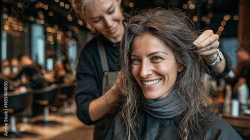 hair, styling, woman, smiling, beauty, salon, hairstylist, modern, relaxed, happy, sex, diversity, equality, inclusion, professional, indoor, fashion, lifestyle, joy, appointment, elegance, grooming, community, contemporary, affectionate, connection, hair care, friendly, person, service, coiffure, satisfaction, trendy, atmosphere, artistry, skilled, aesthetic, relaxation, client, assistance, makeover, transformation, enjoyment, warmth, feminine, hairdresser